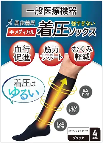 一般的に、日中用は15〜25hPa前後、就寝用は10〜15hPa前後が目安。医療分野では弾性ストッキングの圧迫圧が治療効果に関与することが示されています(日本静脈学会ガイドライン)。