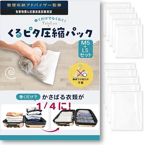 旅行は手巻きタイプが強いです。掃除機が使えない環境でも、服を入れて丸めるだけで空気が抜ける。さらに「汚れもの/きれいな服」を分けられるので、荷物管理が楽になります。