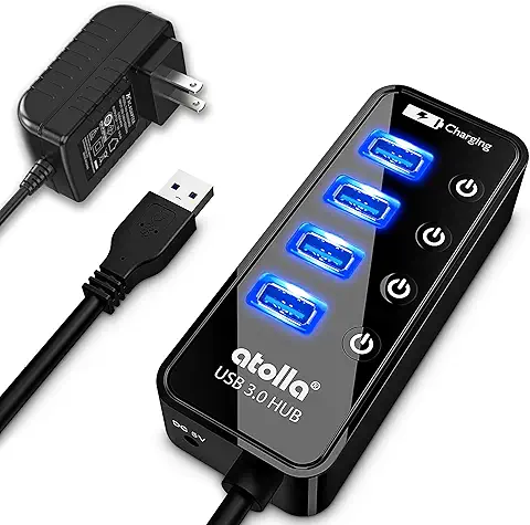 👉 セルフパワーUSBハブ人気ランキング(Amazon) 『USB3.0ハブ 電源付き, atolla 4ポート高速USB3.0 の 拡張+ 1充電ポート USB Hub 独立スイッチ付 5V/3A ACアダプタ付き』